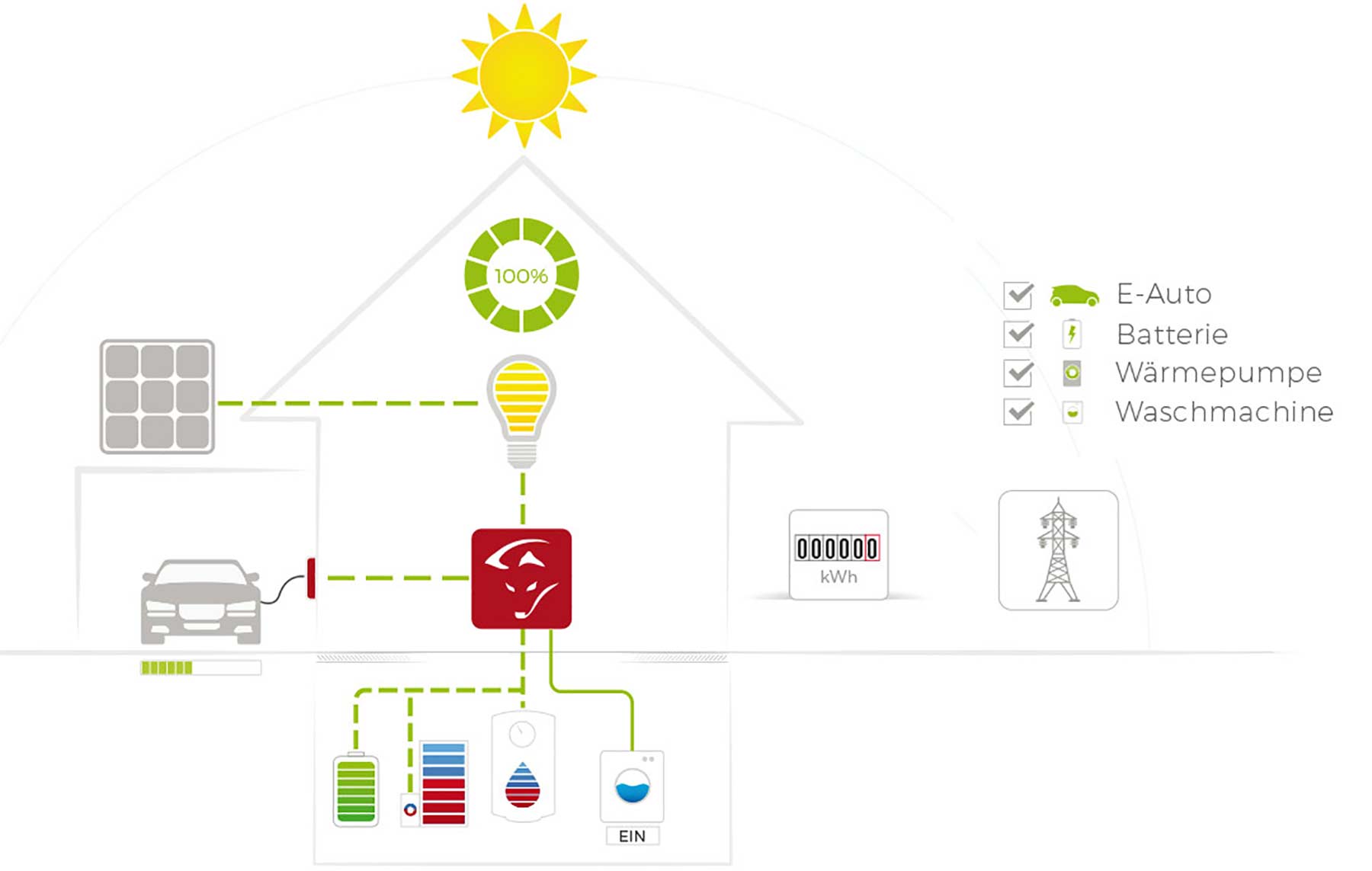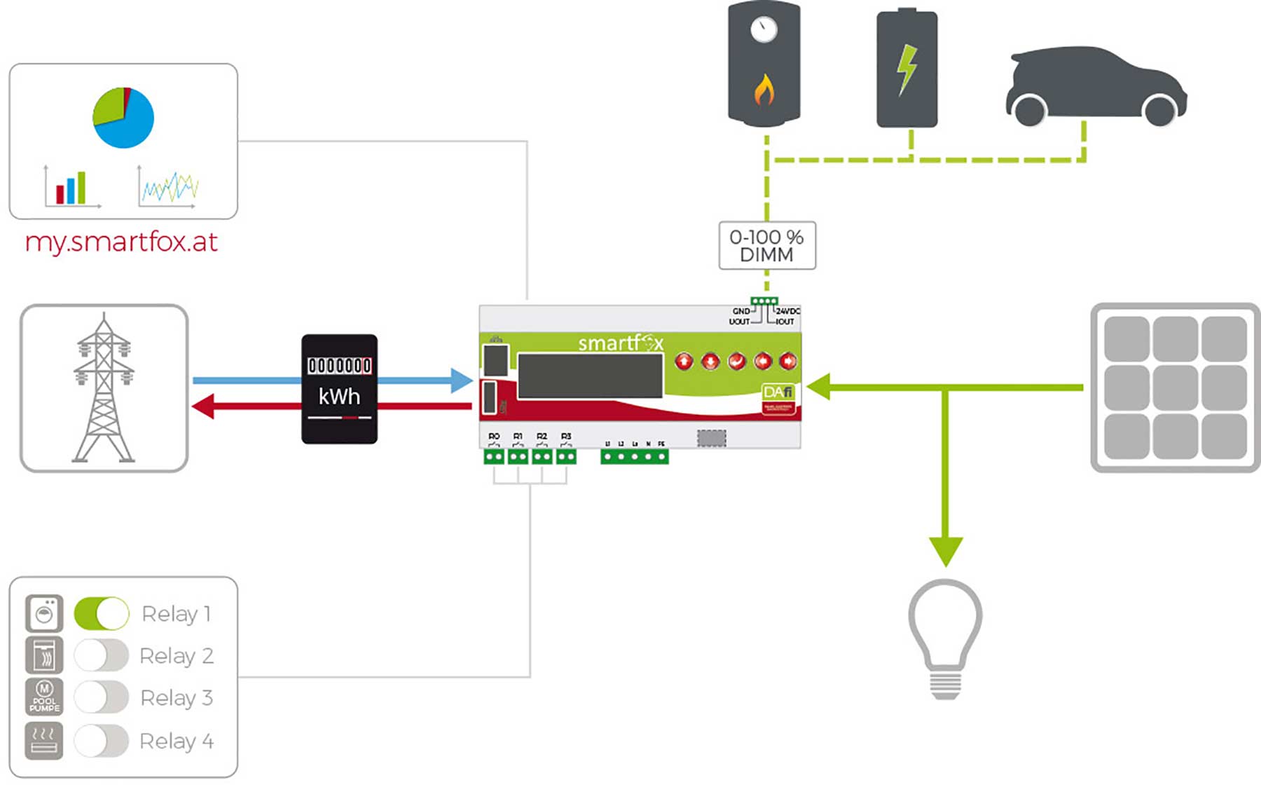 Oft wird selbst erzeugter Solarstrom nicht umgehend benötigt und ins öffentliche Netz eingespeist und wiederum zu einem späteren Zeitpunkt teuer aus dem öffentlichen Netz zugekauft. Hier setzt Smartfox an: bereits zum Zeitpunkt der Erzeugung von überschüssigem Solarstrom wird dieser intelligent über eine Eigenverbrauchsoptimierung an Ort und Stelle bei Verbrauchern eingesetzt.