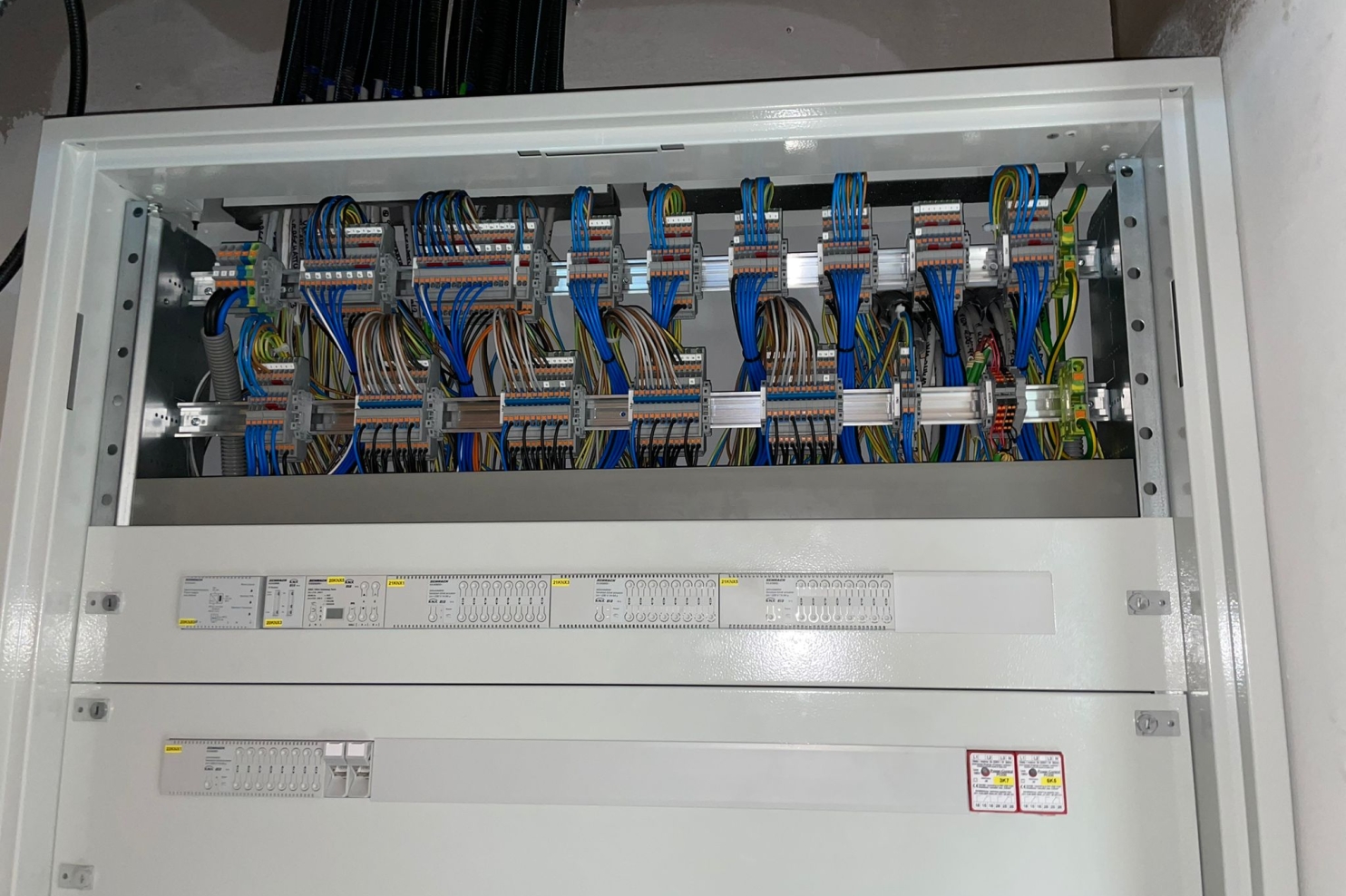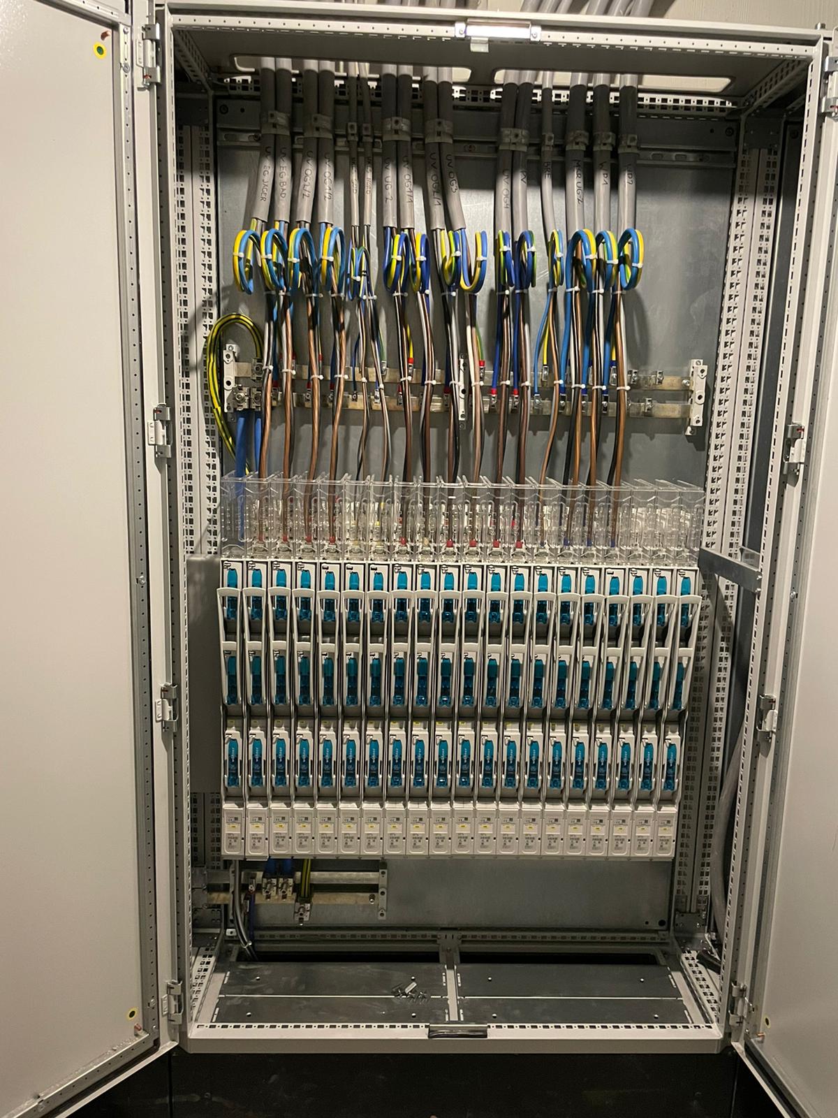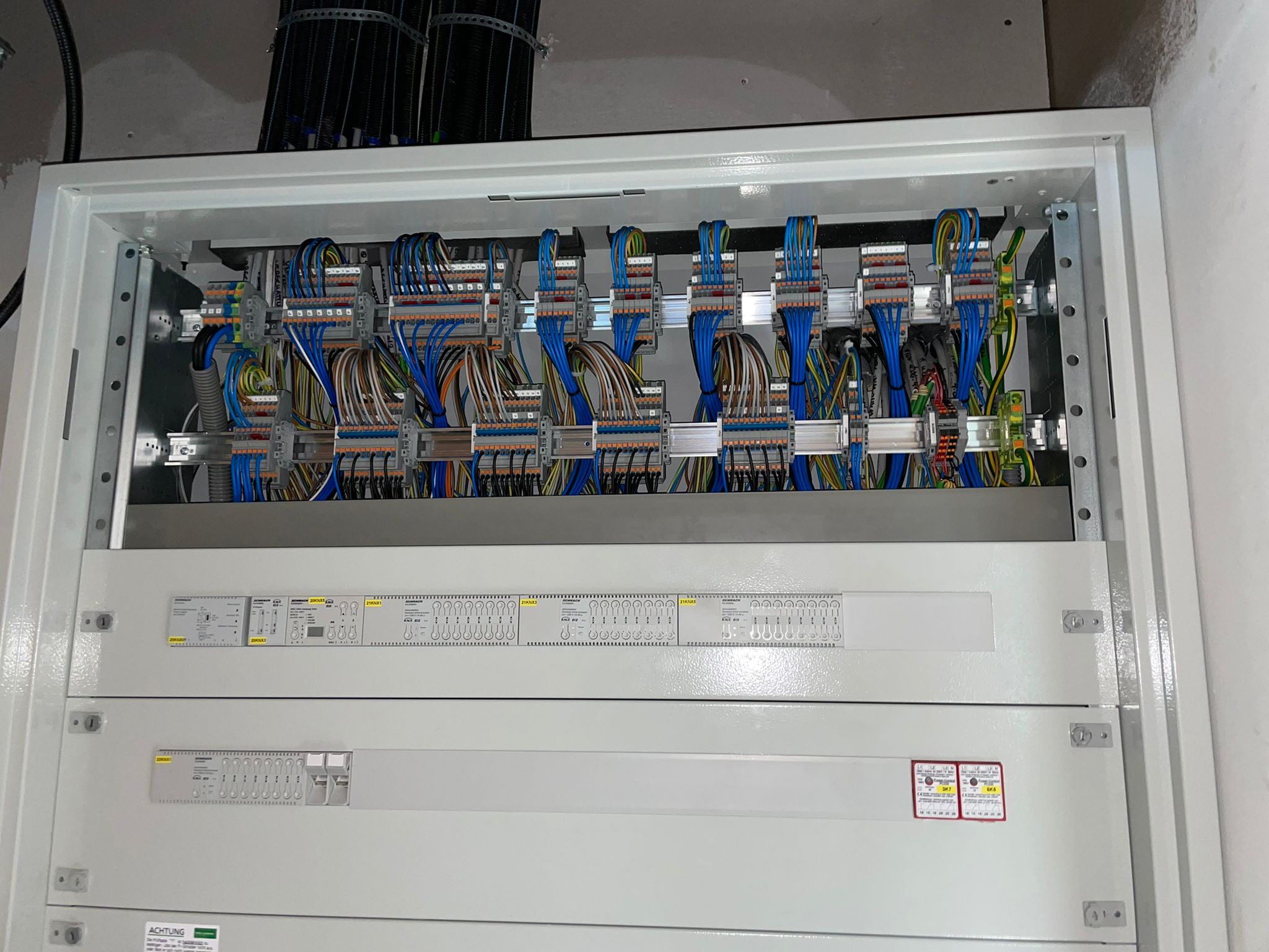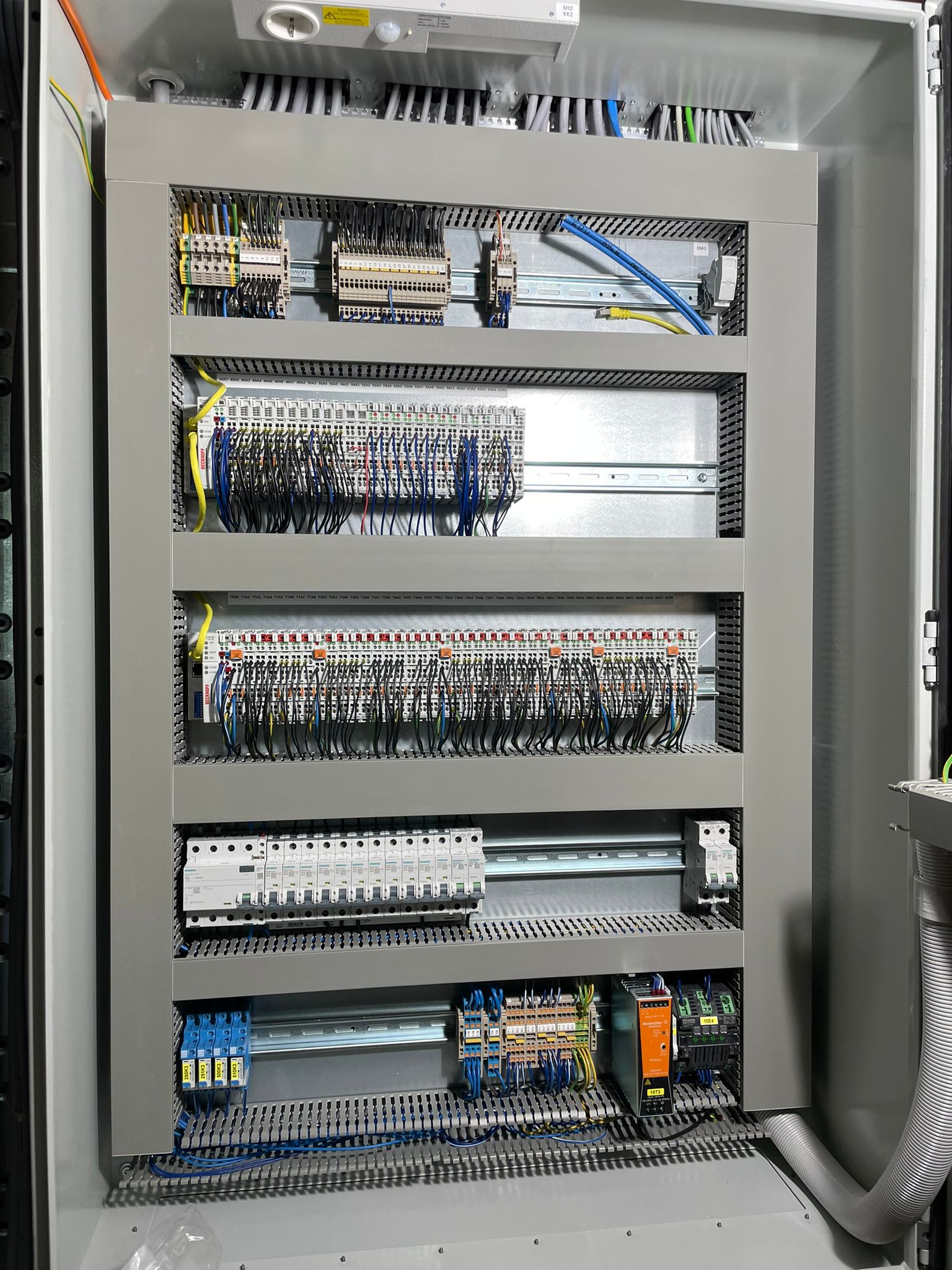 Ausgehend von den Schaltschränken werden alle Maschinen- und Anlagenteilen, Beleuchtungsbereiche und sonstige elektrischen Anlagen versorgt und Steuersignale an die richtige Stelle übergeben. Hier legen wir hohen Wert auf vorausschauende einwandfreie Planung, Ausführung und Zuverlässigkeit. Dies umfasst unter anderem die Auswahl der richtigen und hochwertigen Komponenten abgestimmt auf die Anforderung des Projekts und deren zuverlässigen Verbau und Verdrahtung im Schaltschrank.