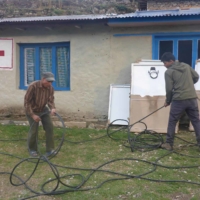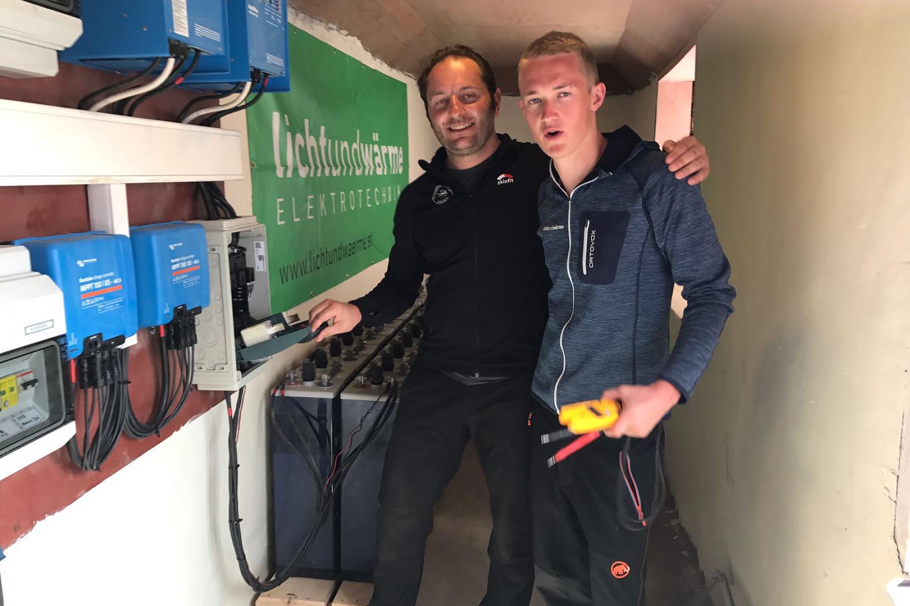 Die erste Besichtigung vor Ort in Nepal – durch unseren Mitarbeiter Lukas Rützler – wurde im November 2016 vorgenommen. Es erfolgte die Bestandsaufnahme, die Berechnung der notwendigen Leistung, die Festlegung der Verkabelung und nicht zuletzt am Wichtigsten der direkte Kontakt mit der Bevölkerung und den künftigen Anlagenbetreibern. Ab diesem Zeitpunkt wurde das Projekt mit konkrete Aufgaben, mit Menschen und Inhalten gefüllt. Direkt nach der Rückkehr aus Nepal wurde firmenintern umgehend mit der Umsetzung gestartet. Von der Materialbeschaffung bis zur Organisation des Transportes wurden nun die Details festgelegt (12 Stunden LKW-Transport und 2 bis 3 Trägertage mit 90 Sherpas für den Materialtransport von ca. 4.000 kg vor Ort). Die Startphase war geschafft und es ging an die konkrete Umsetzung – eine besondere Herausforderung durch die Gegebenheit der räumlichen Distanz. Der grobe Zeitplan wurde mit fixen Terminen für den Transport, die Montage und die Inbetriebnahme gefüllt. Ende März 2017 war alles nun soweit organisiert, dass im April bei unserer Ankunft die Montage und Inbetriebnahme ins Auge gefasst werden konnte. Am 21. April starteten Bernhard Burtscher und Lukas Rützler nach Nepal. Nach einem 10 stündigen Flug, mehreren Fahrkilometern und einem weiteren Flug nach Paphlu wurde der Ausgangspunkt erreicht. Von nun an war nur mehr der Weg zu Fuß möglich. Nach zwei Tagen Fußmarsch und einem Tag Ruhepause vor Ort wurde umgehend mit der Montage der PV-Module, der Verkabelung und der Umsetzung der Anschlüsse begonnen. Gemeinsam mit dem einheimischen Elektrikermeister Suresh Pahari und mehreren Helfern wurde innerhalb von 3 Tagen die Anlage soweit fertiggestellt, dass der erste Strom erzeugt werden konnte. Die Schule und das neu erbaute Emil-Krankenhaus waren nun „Selbstversorger“. Ein großer und bewegender Moment für alle Beteiligten! Der nepalesischen Tradition entsprechend wurde dies mit einer großen einzigartigen und unvergesslichen Feier auch entsprechend gewürdigt. Nach zwei weiteren Tagen vor Ort wurde anschließend die Heimreise angetreten. Bleibende Eindrücke, das Gefühl das Richtige getan zu haben und vor allem neue Freunde gewonnen zu haben werden uns auch in Zukunft begleiten …