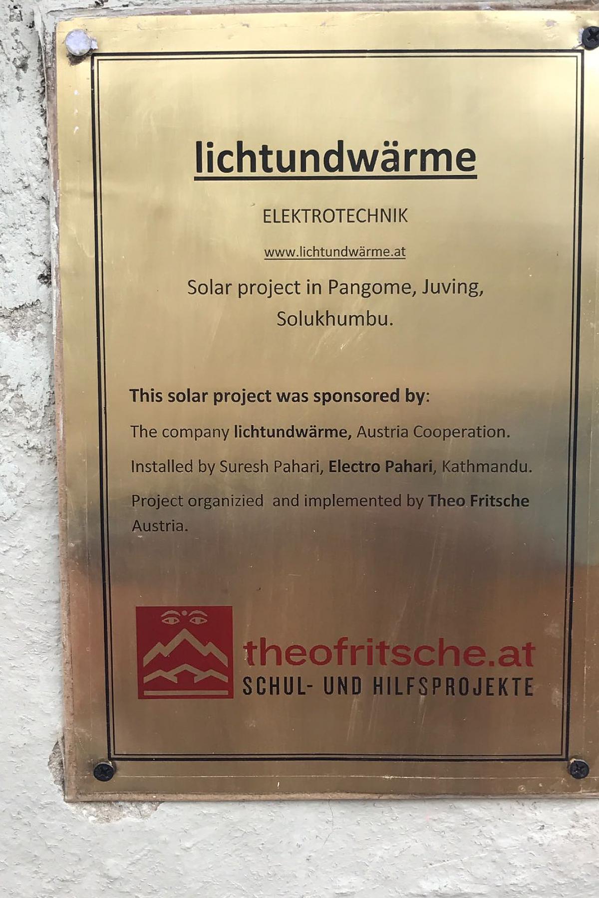 Über den bereits bestehende Kontakt mit Theo Fritsche und inspiriert durch seine Leistungen im Rahmen der Schul- und Hilfsprojekte in Nepal konnten wir schnell ein Projekt finden, bei dem wir unsere bisherigen Geldmittel für Firmenspenden und -sponsoring sowie unser eigenes Know-how im PV-Anlagenbereich entsprechend zielführend einsetzen konnten.